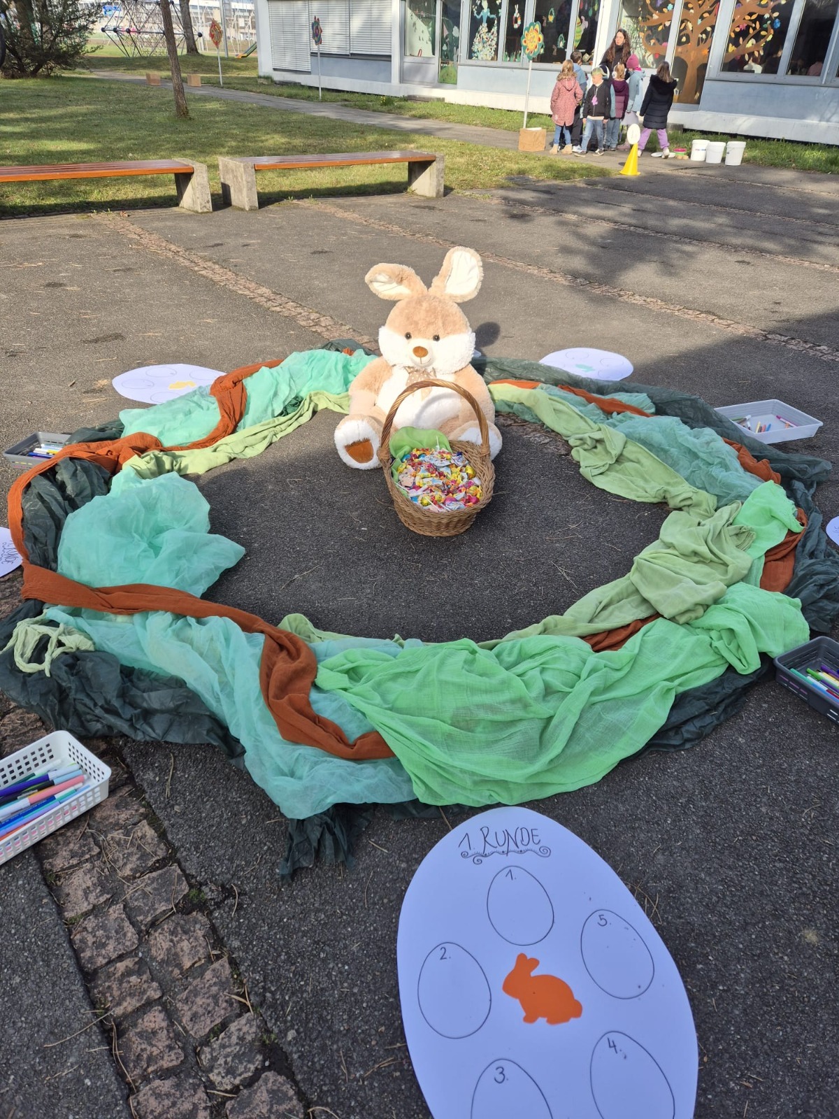 Am Dienstag, 24.03.2026, fand der Ostermorgen im Zyklus 1 statt. Der Hase «Hänsu» hatte sich leider verletzt und war deshalb auf die Hilfe der Kinder angewiesen. Mit grossem Tatendrang unterstützten die Kinder ihn dabei und durchliefen in Gruppen verschiedene passende Posten. Es war ein Morgen voller Eifer, Freude und vieler strahlender Kinder.